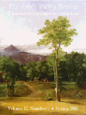 | Apple Valley Review Volume 11, Number 1 (Spring 2016) Featuring fiction, nonfiction, poetry, and artwork by Virginia Barrett, Michael Chin, Martha Clarkson, Thomas Cole, Carmen Firan, Gayane M. Haroutyunyan, K. J. Knoespel, Kevin McLellan, Gail Peck, Colin Pope, Domenic Scopa, Knud Sørensen, Denise Tolan, Laura Lee Washburn, and Sarah Wolf. |